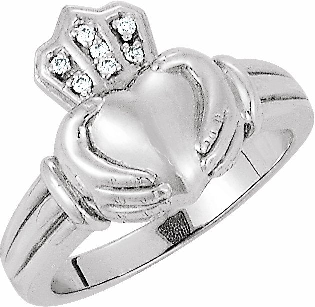 120682 / Mens / Ring / Set / Diamond / Round / 1 Mm / 14K White / Si2-Si3, G-H :: 0.03 Ctw / Polished / Claddagh Ring
