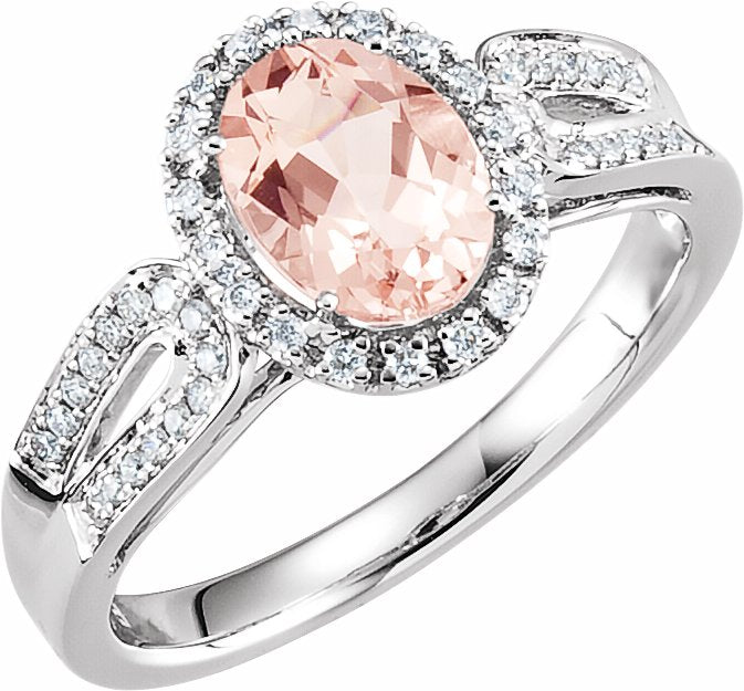 651508 / 14K White / Genuine Morganite And 1/5Ctw Diamond Ring