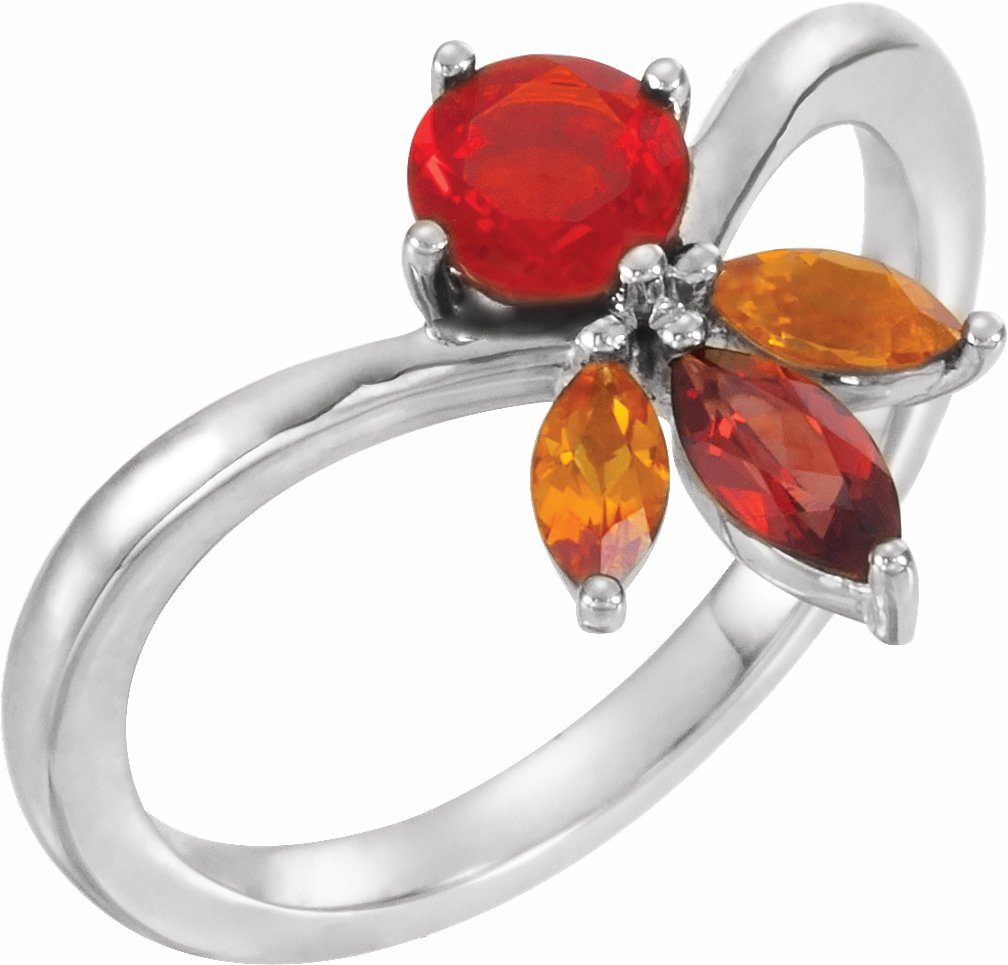 72045 / Set / 14K White / Polished / Mexican Fire Opal, Mozambique Garnet And Citrine Ring