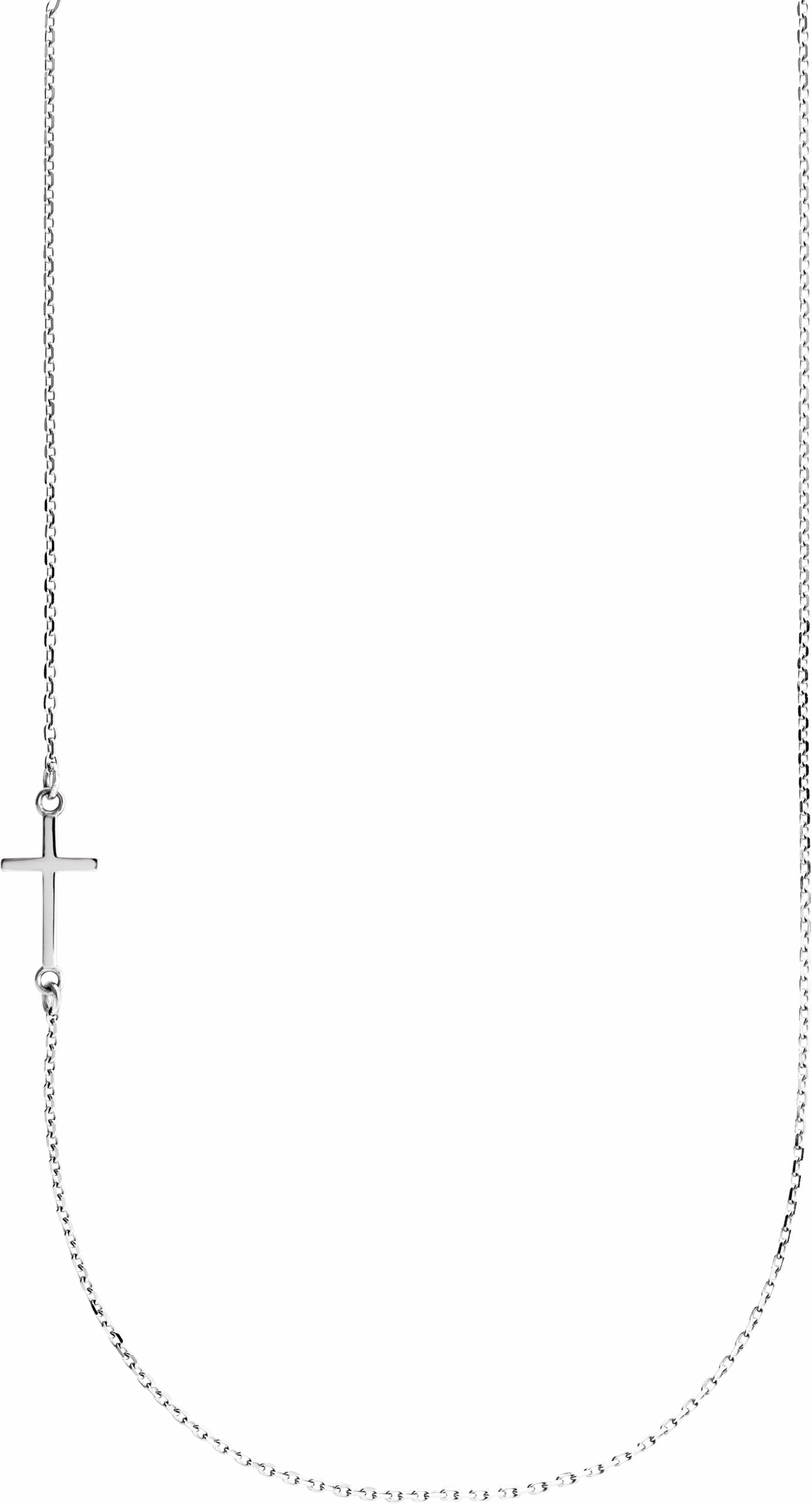 86564 / Necklace / 14K White / Polished / Off-Center Sideways Cross Necklace