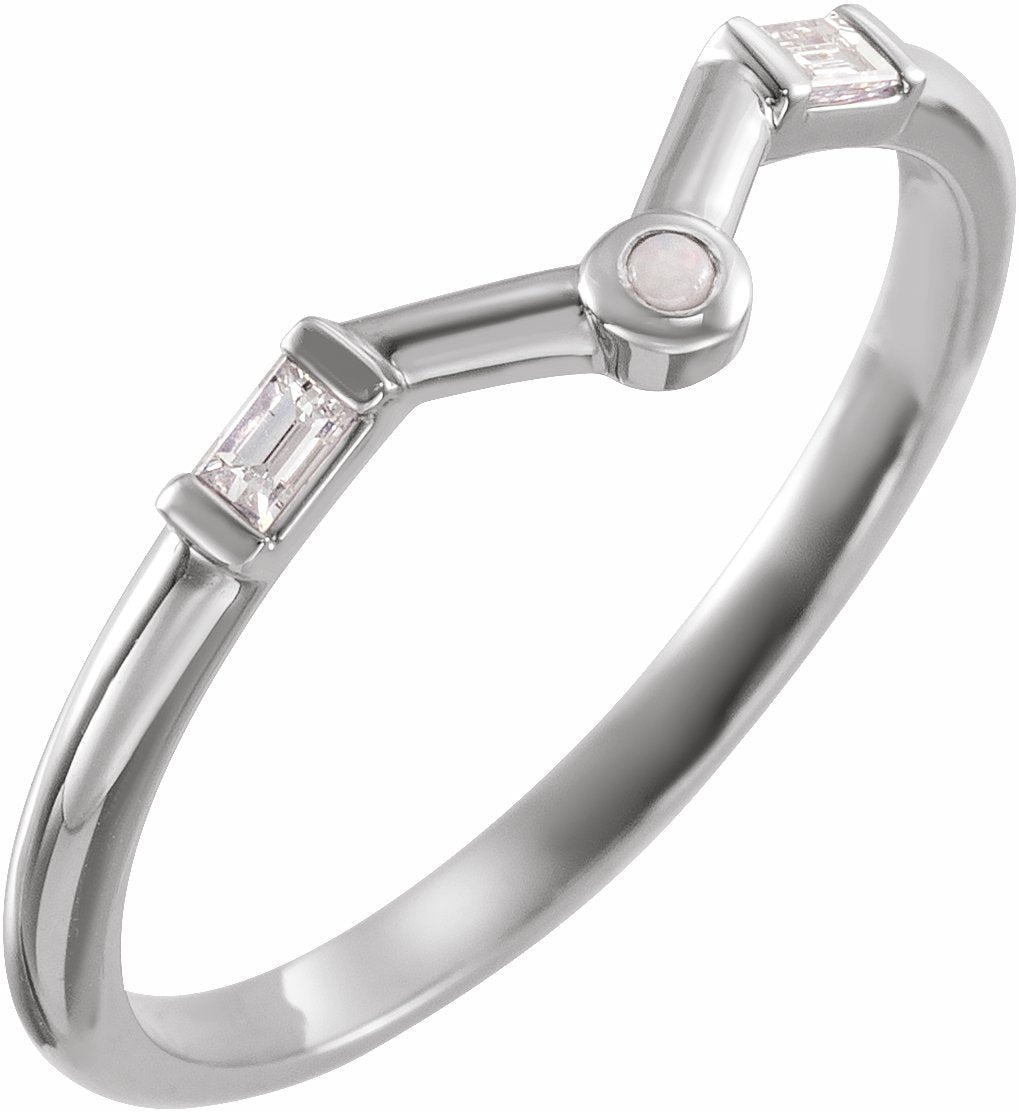 14K White Opal & .08 CTW Diamond V Ring - 72140104P