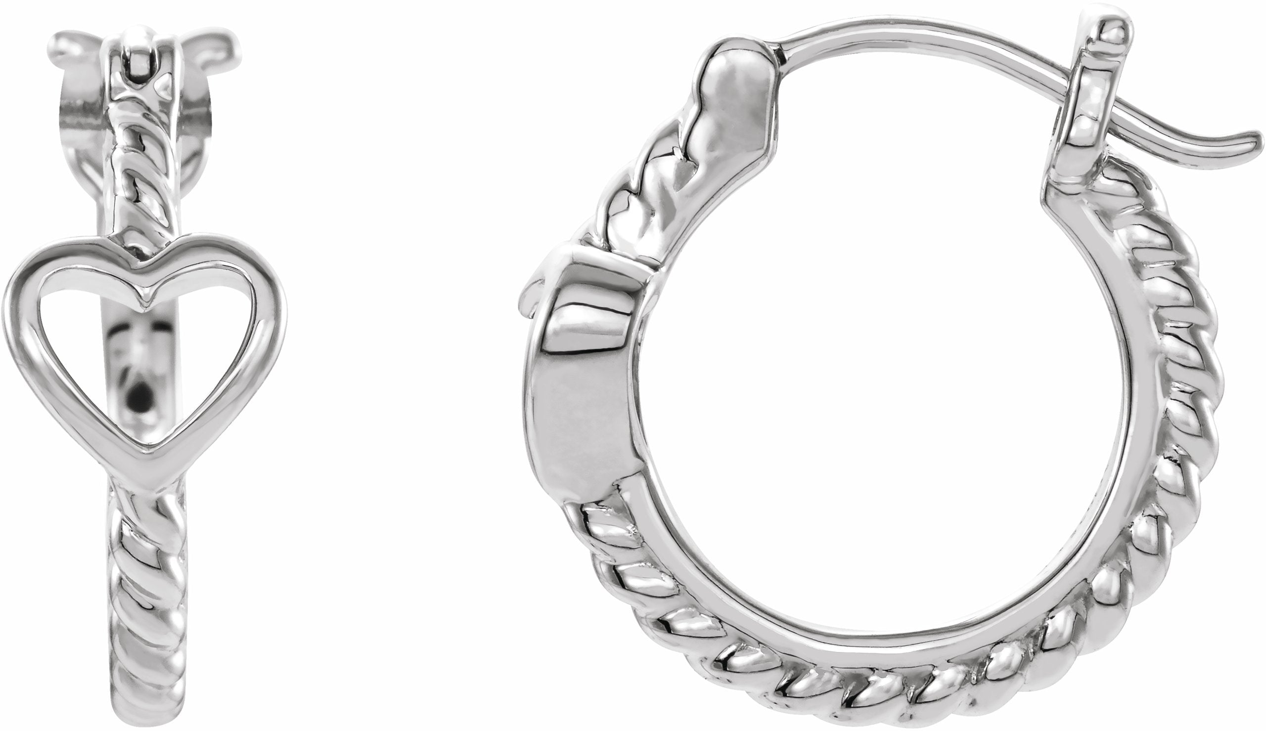 14K White Pierced Heart Rope Hoop Earrings - 653407601P