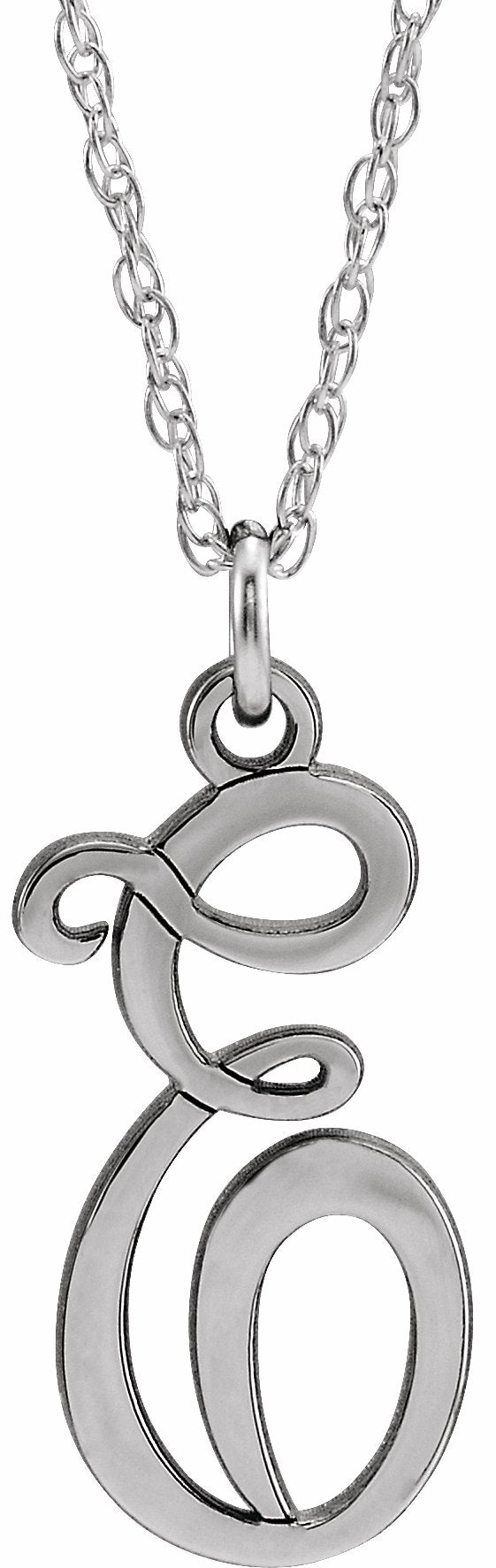 87090 / 14K White / E / 16-18 In / Polished / Script Initial Necklace