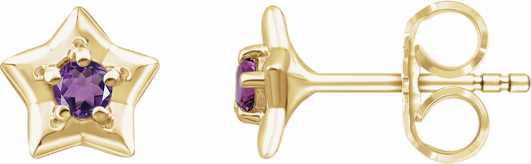 653421 / Set / 14K Yellow / February / Pair / Friction Post / Without Box / Polished / Star Youth Earrings With Friction Backs