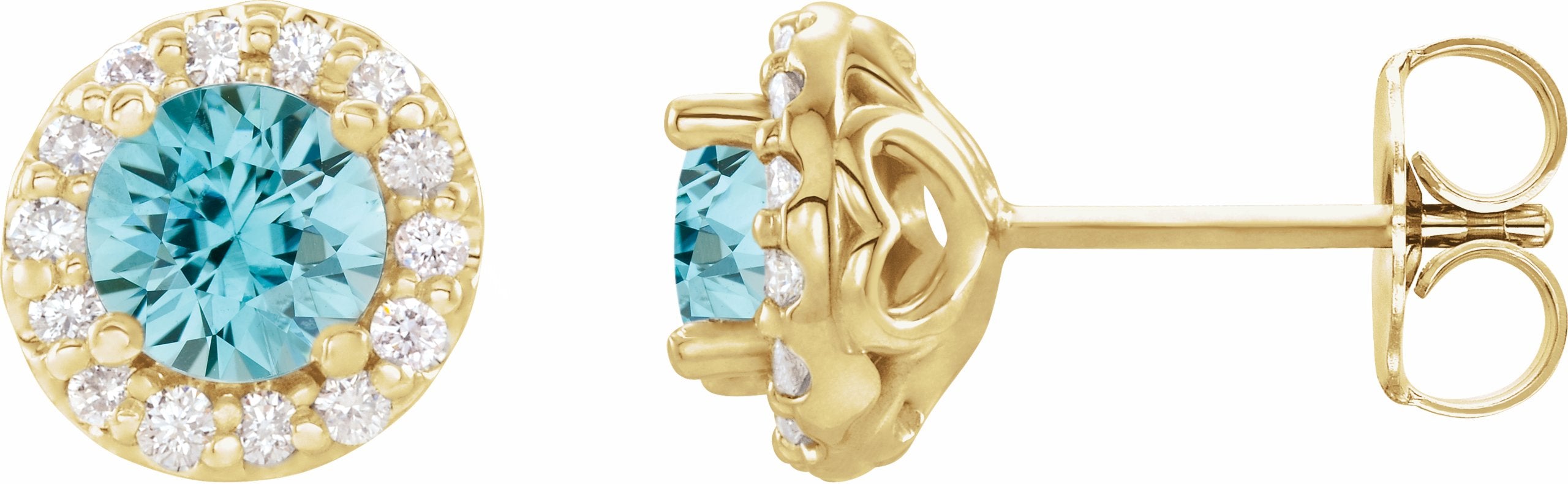 86839 / Earring / Set / Blue Zircon / Round / 4 Mm / 14K Yellow / Pair / Friction Backs Included / Polished / Blue Zircon And 1/8 Ctw Diamond Earrings