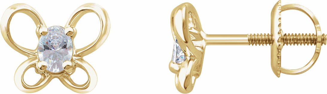 14K Yellow 4x3 mm Oval April Youth Butterfly Birthstone Earrings - 653416646P