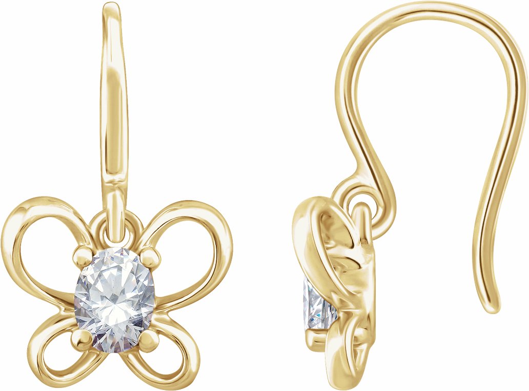 14K Yellow 4x3 mm Oval April Youth Butterfly Birthstone Earrings - 653417610P