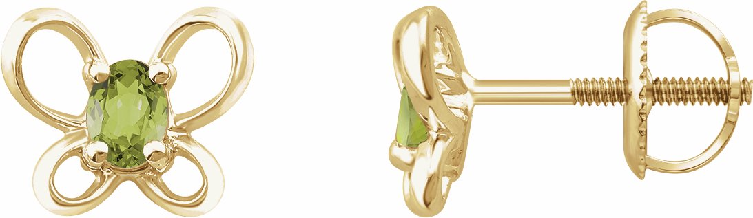 14K Yellow 4x3 mm Oval August Youth Butterfly Birthstone Earrings - 653416658P