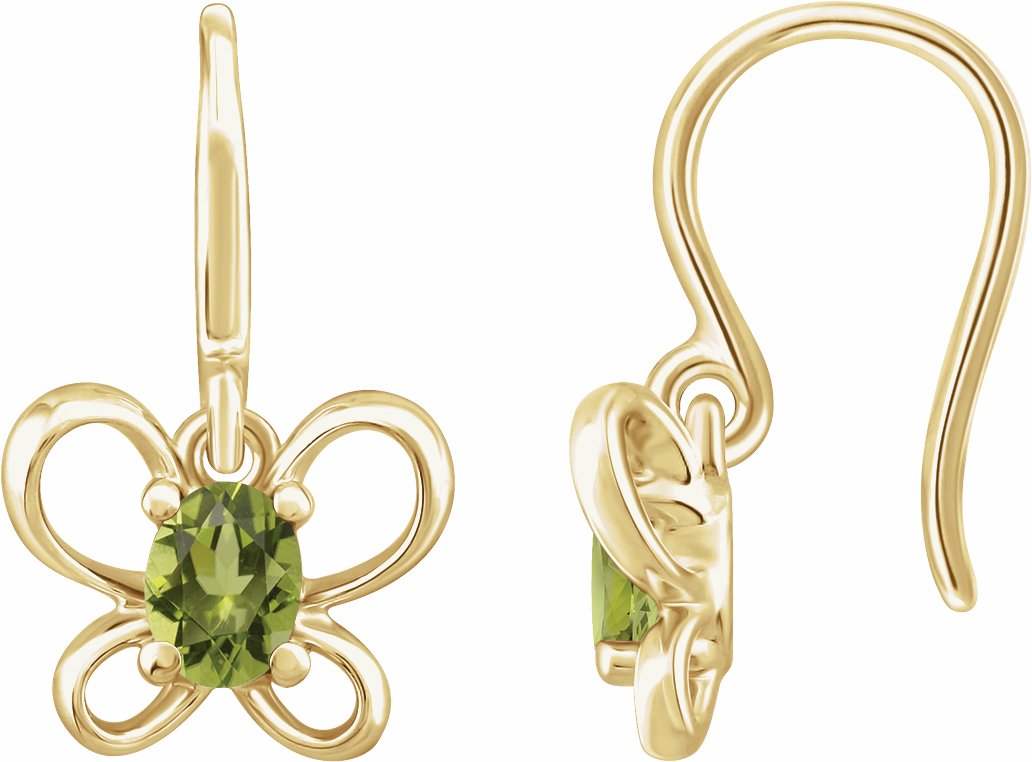 14K Yellow 4x3 mm Oval August Youth Butterfly Birthstone Earrings - 653417619P