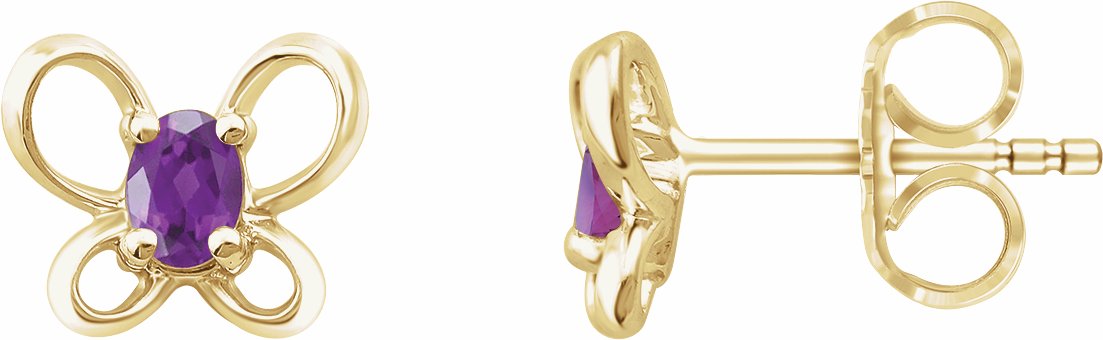 14K Yellow 4x3 mm Oval February Youth Butterfly Birthstone Earrings - 653416604P