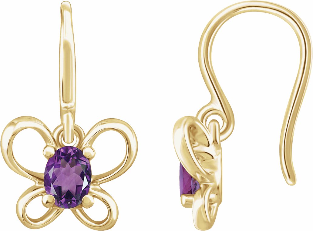 14K Yellow 4x3 mm Oval February Youth Butterfly Birthstone Earrings - 653417604P