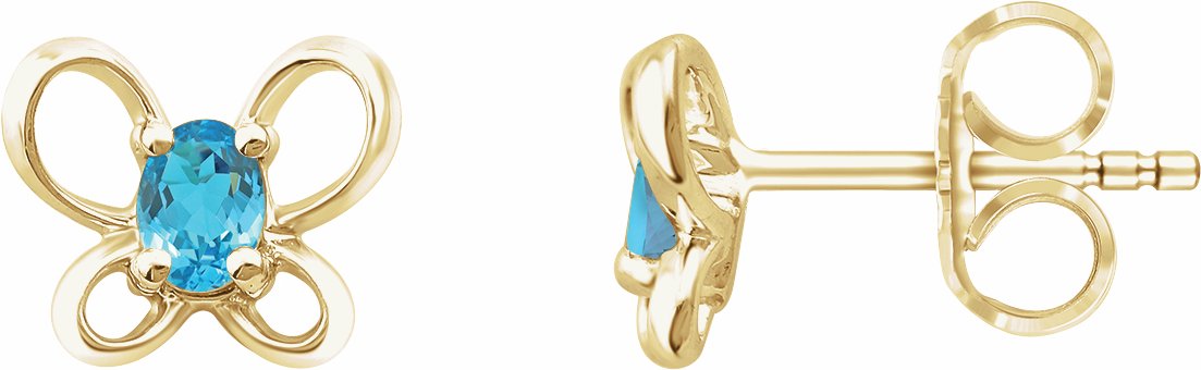 14K Yellow 4x3 mm Oval March Youth Butterfly Birthstone Earrings - 653416607P