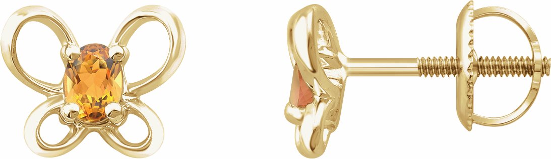 14K Yellow 4x3 mm Oval November Youth Butterfly Birthstone Earrings - 653416667P
