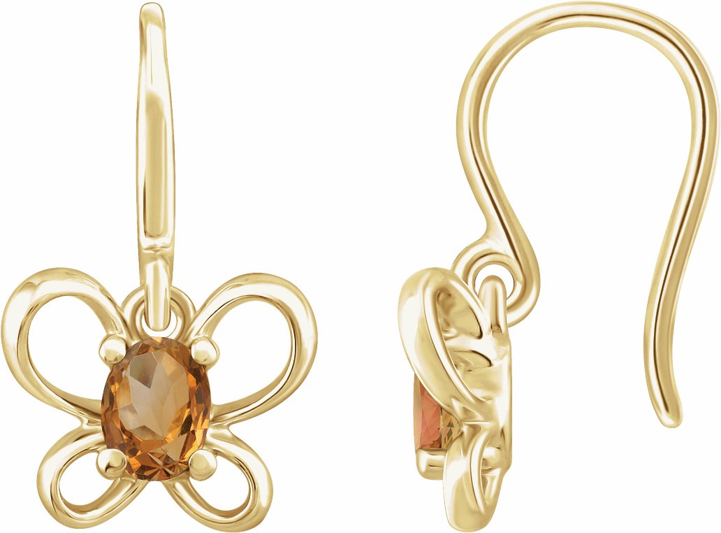 14K Yellow 4x3 mm Oval November Youth Butterfly Birthstone Earrings - 653417628P