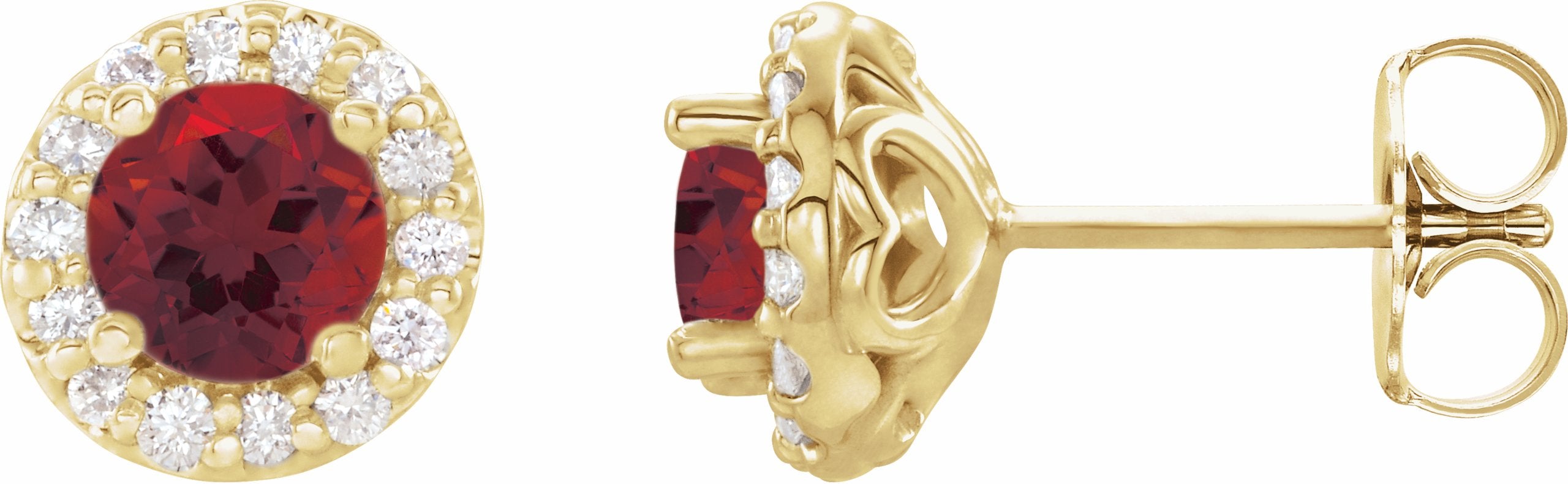 86839 / Earring / Set / Mozambique Garnet / Round / 6 Mm / 14K Yellow / Pair / Friction Backs Included / Polished / Mozambique Garnet And 1/4 Ctw Diamond Earrings