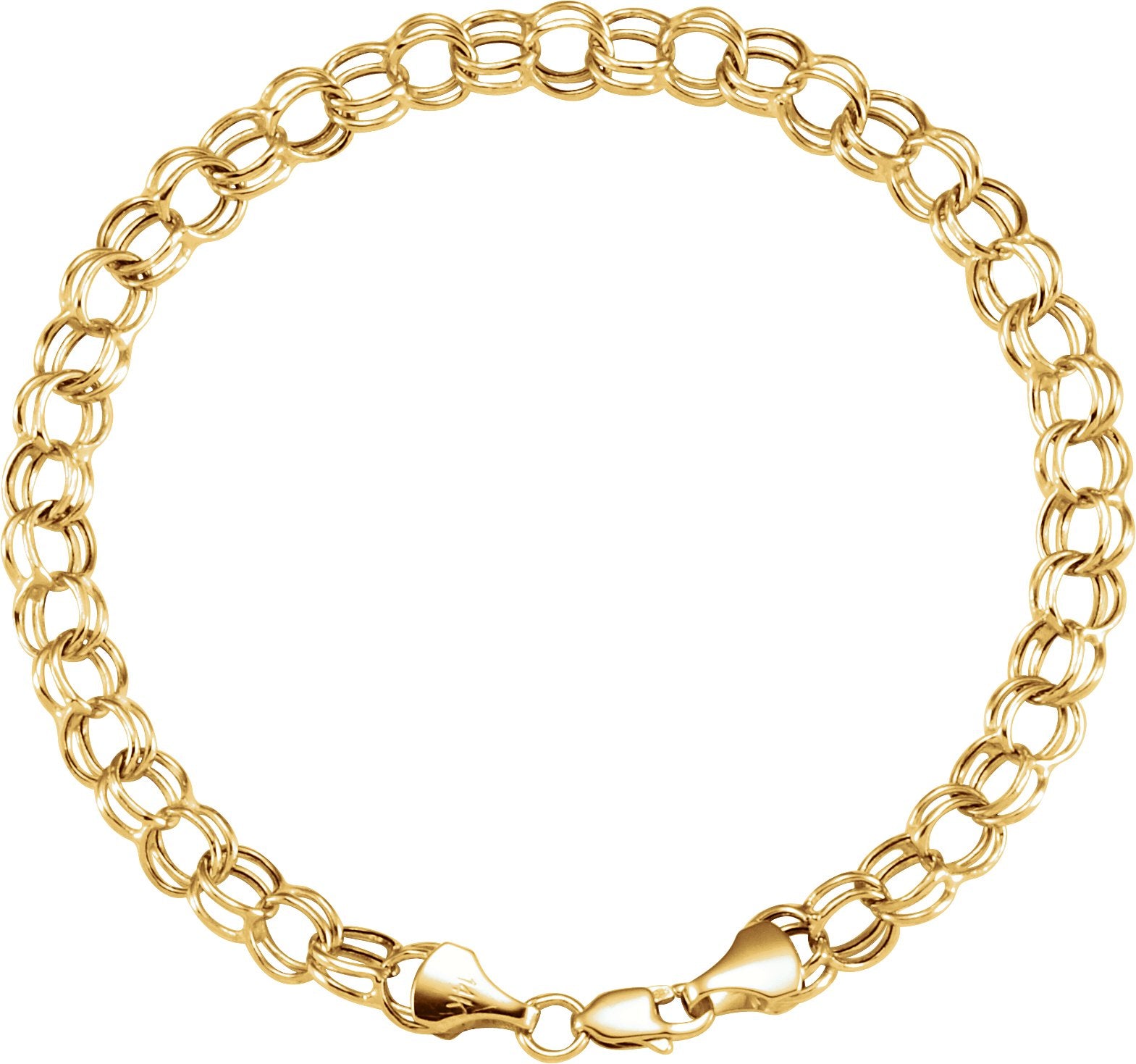 651631 / 14K Yellow / 07.25 Inch / Double Link Charm Bracelet With Lobster Clasp
