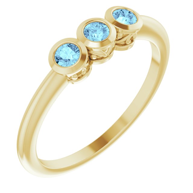14K Yellow Aquamarine Three-Stone Bezel-Set Ring - 71996614P