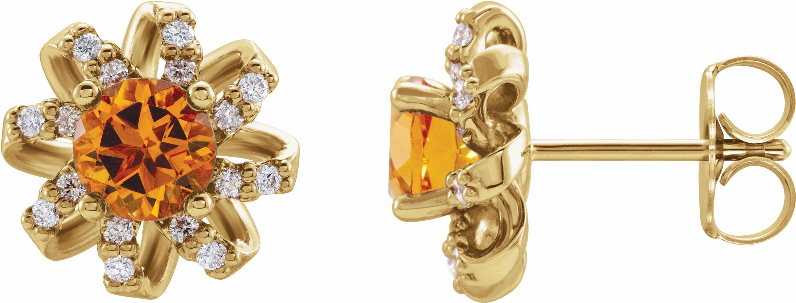 87092 / Earring / Set / Citrine / Round / 5 Mm / 14K Yellow / I1, G-H :: 1/6 Ctw / Pair / Friction Post / Friction Backs Included / Polished / Citrine Earrings With Diamond Accents