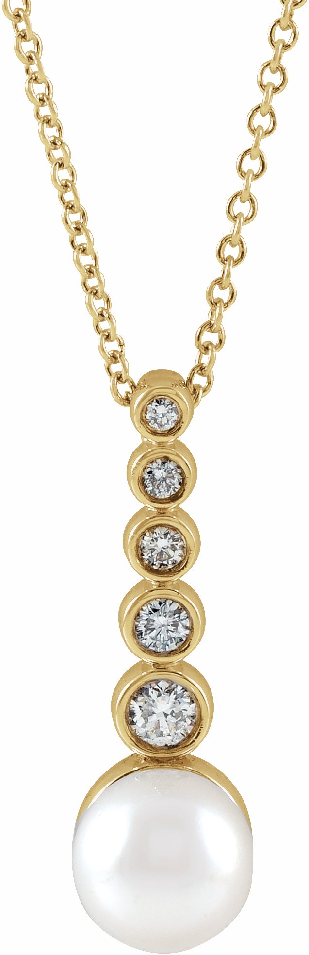 14K Yellow Cultured Akoya Pearl & 1/8 CTW Diamond Bar 16-18 Necklace - 87185117P