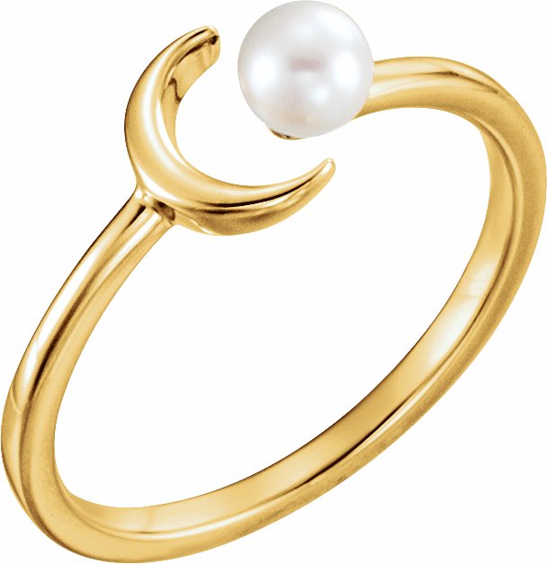 14K Yellow Cultured Freshwater Pearl Crescent Moon Ring - 6494601P