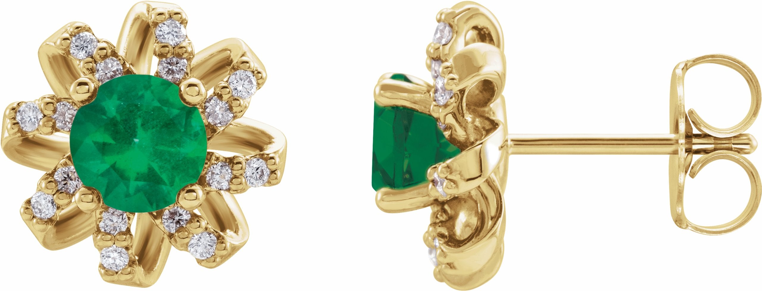 87092 / Earring / Set / Emerald / Round / 5 Mm / 14K Yellow / I1, G-H :: 1/6 Ctw / Pair / Friction Post / Friction Backs Included / Polished / Emerald Earrings With Diamond Accents