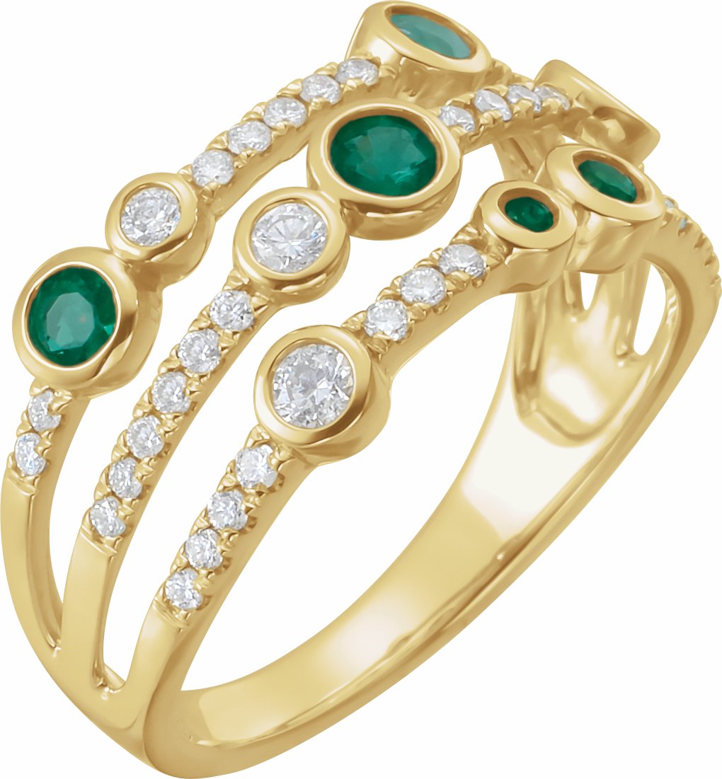653533 / Set / 14K Yellow / Polished / Genuine Emerald And 3/8 Ctw Diamond Ring