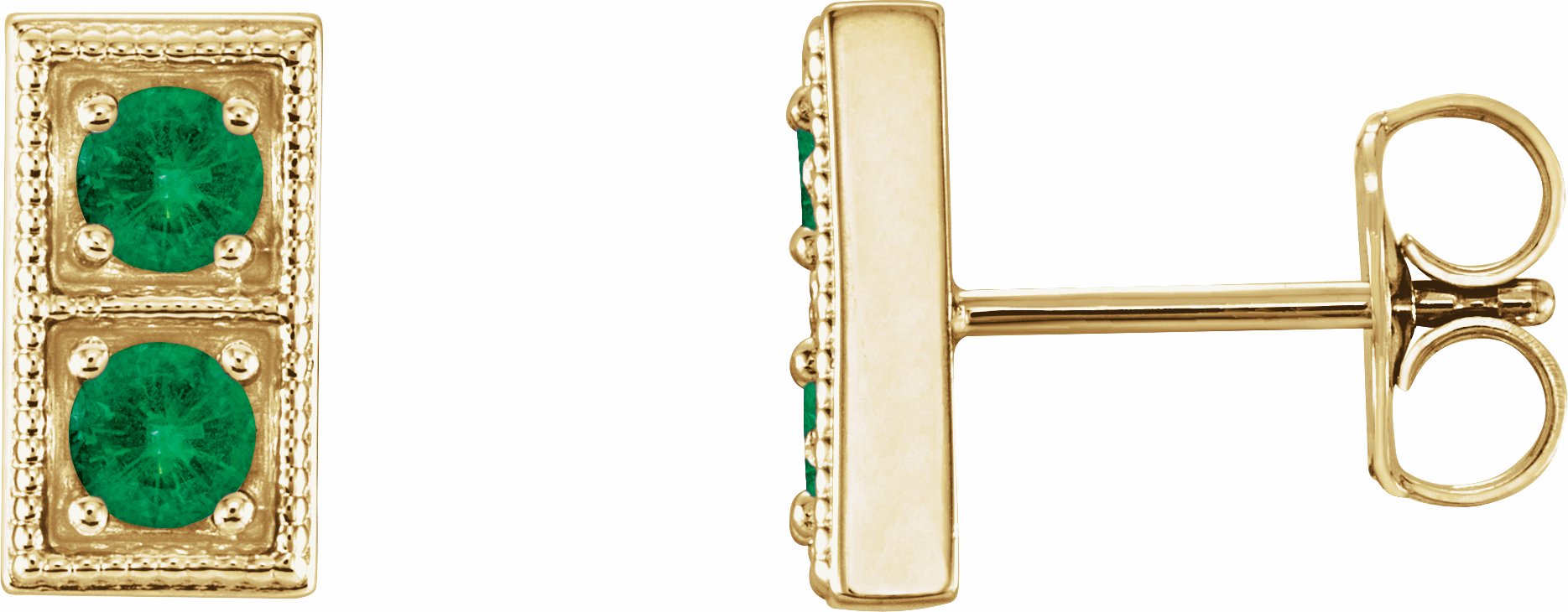 86538 / Set / 14K Yellow / Emerald / 3 Mm / Pair / Polished / Genuine Emerald Earrings With Backs