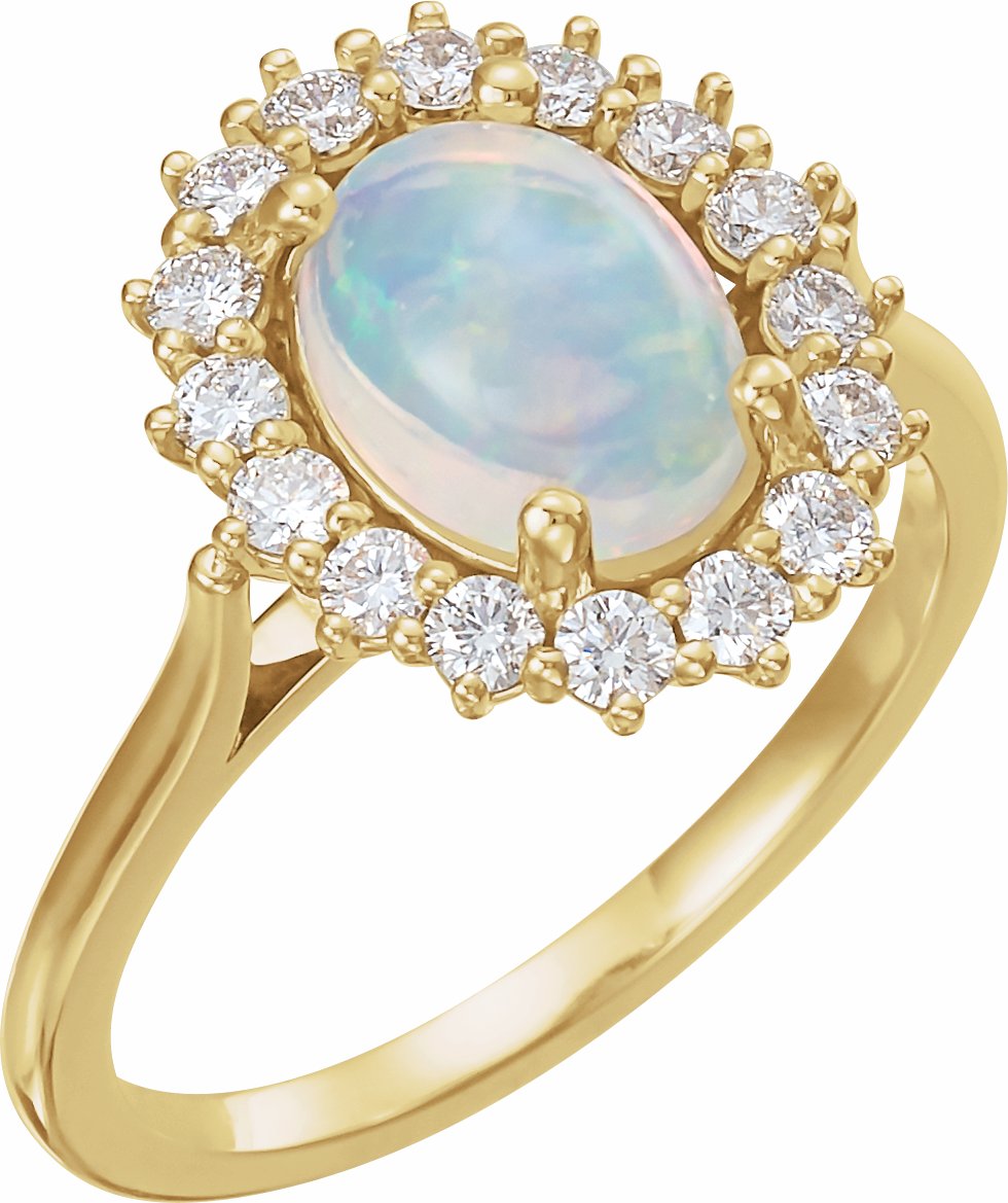 72070 / Set / 14K Yellow / White Ethiopian Opal / Oval / 8 X 6 Mm / Polished / Genuine Ethiopian Opal And 3/8 Ctw Diamond Ring