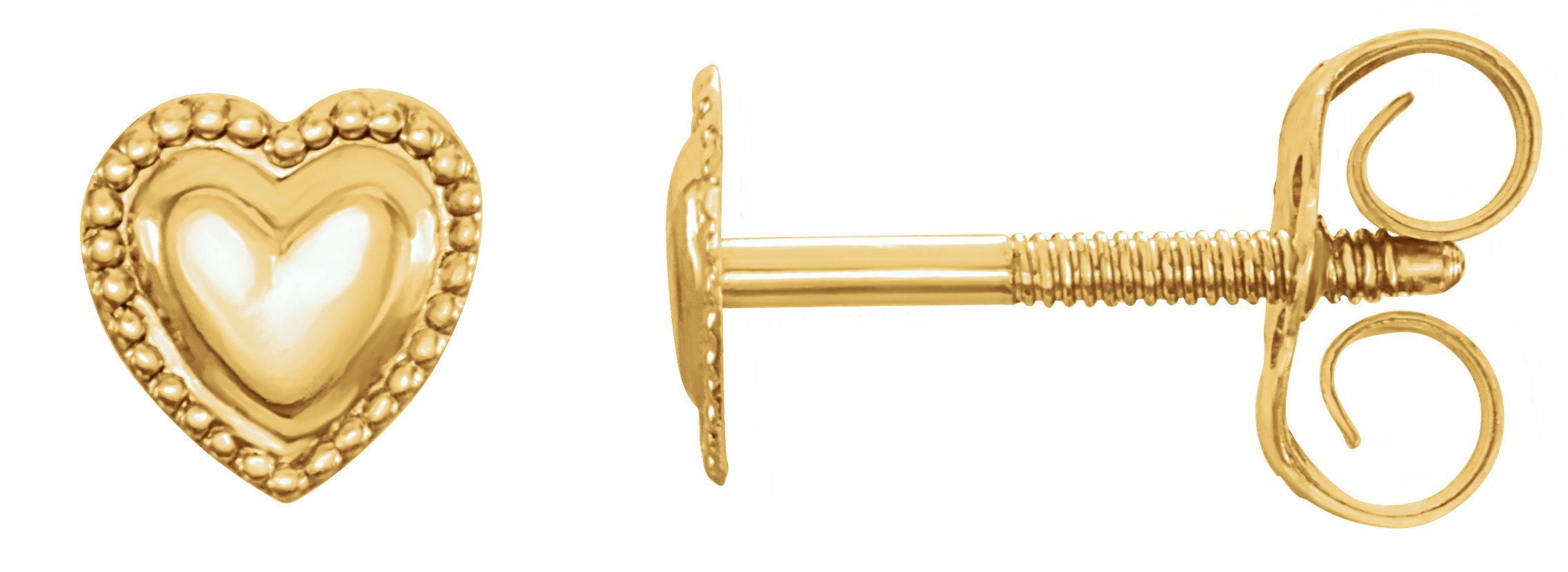 19115 / 14K Yellow / Pair / Without Box / Polished / Youth Heart Earrings With Backs