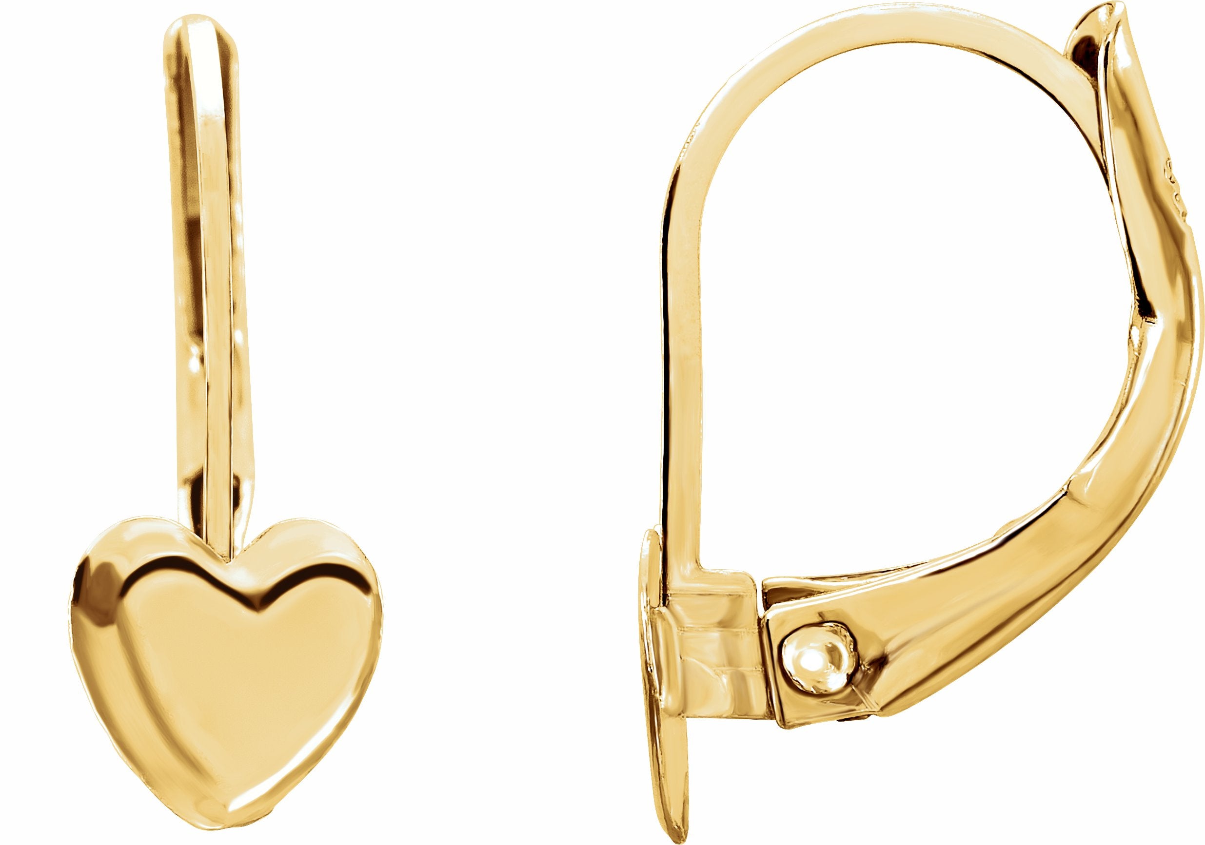 19113 / 14K Yellow / Pair / Without Box / Polished / Youth Lever Back Heart Earrings
