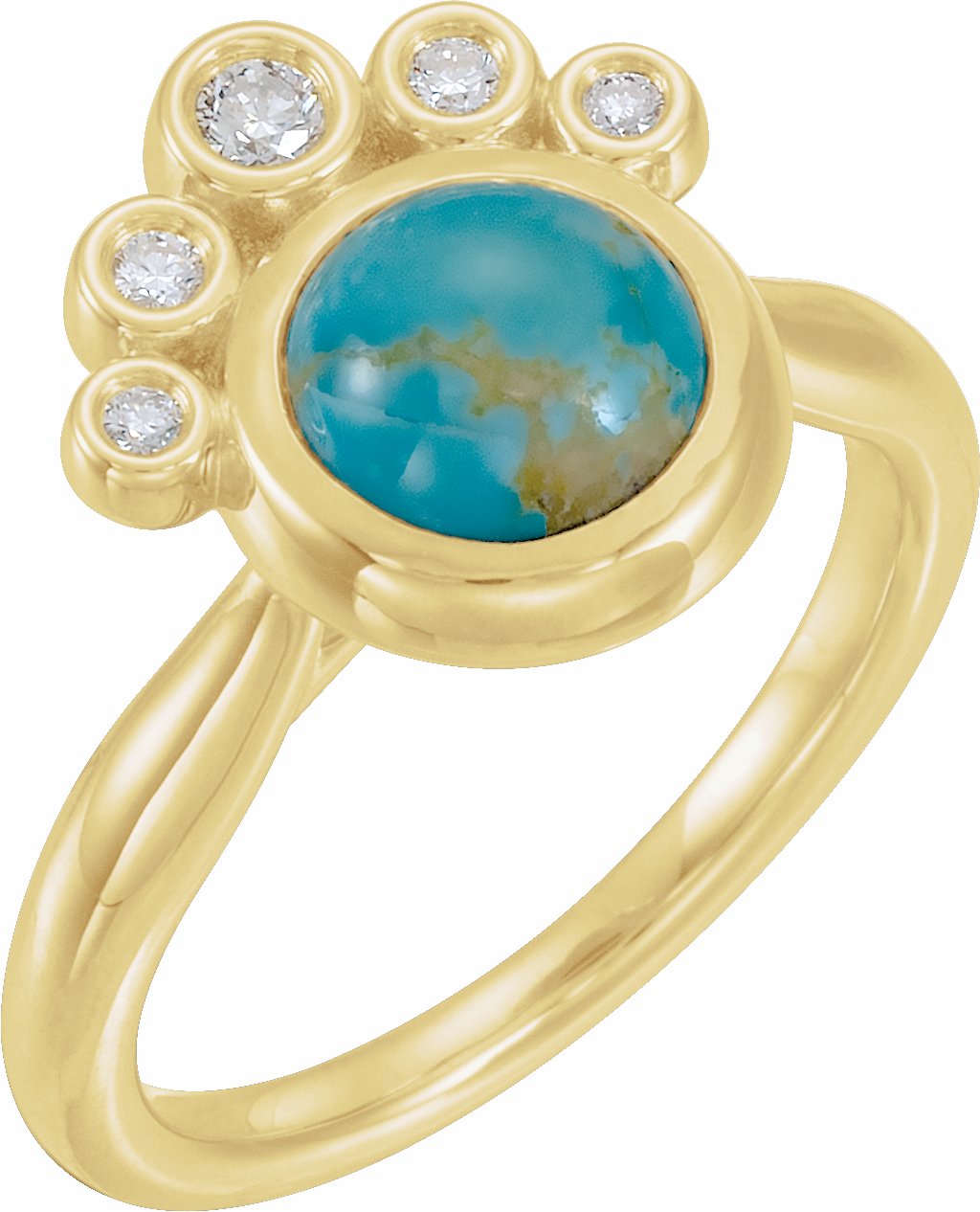 72052 / Set / 14K Yellow / Diamond / Polished / Genuine Kingman Turquoise And 1/8 Ctw Diamond Ring