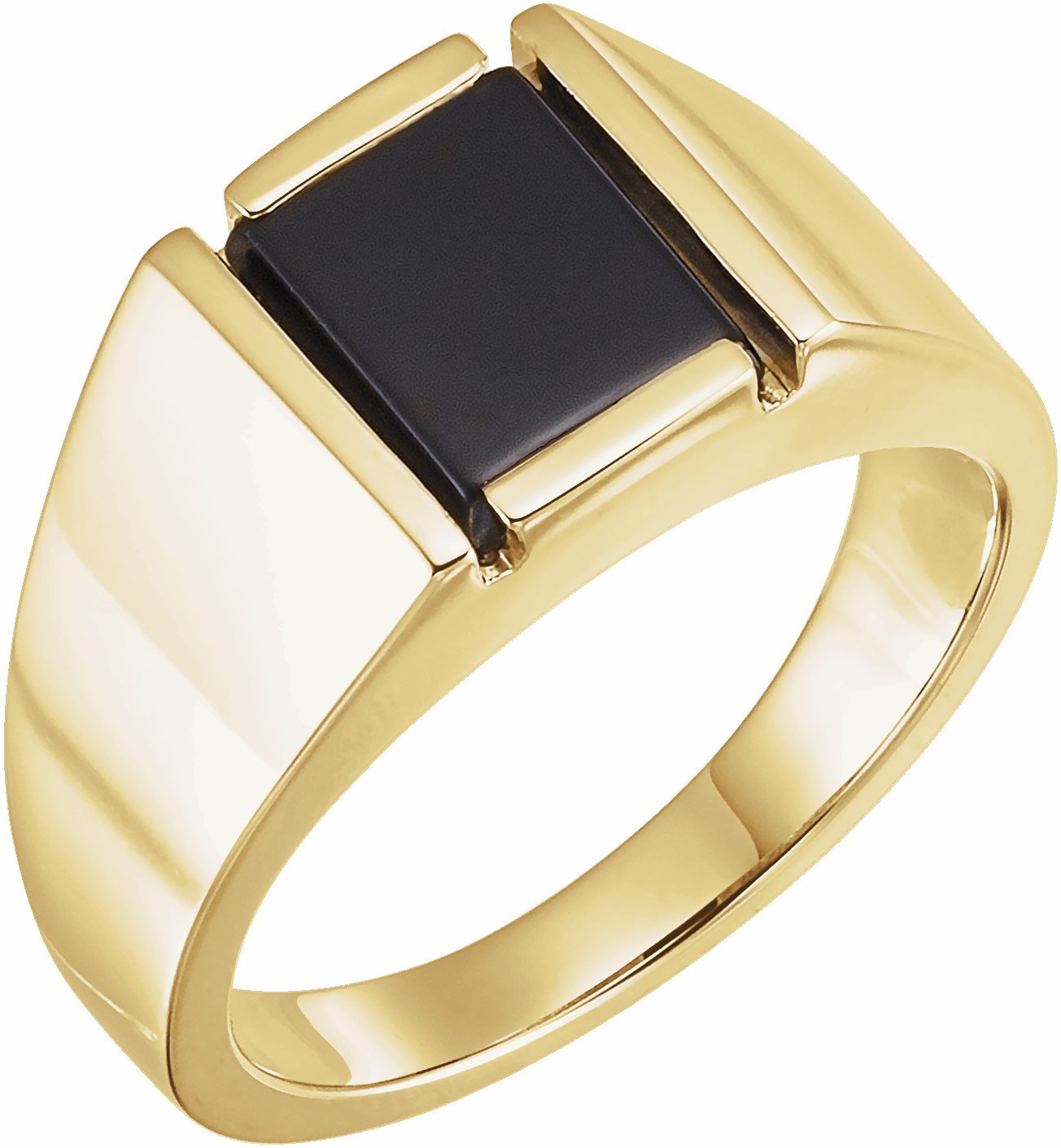 60691 / Set / 14K Yellow / Cushion / 10X8 Mm / Polished / Mens Onyx Ring