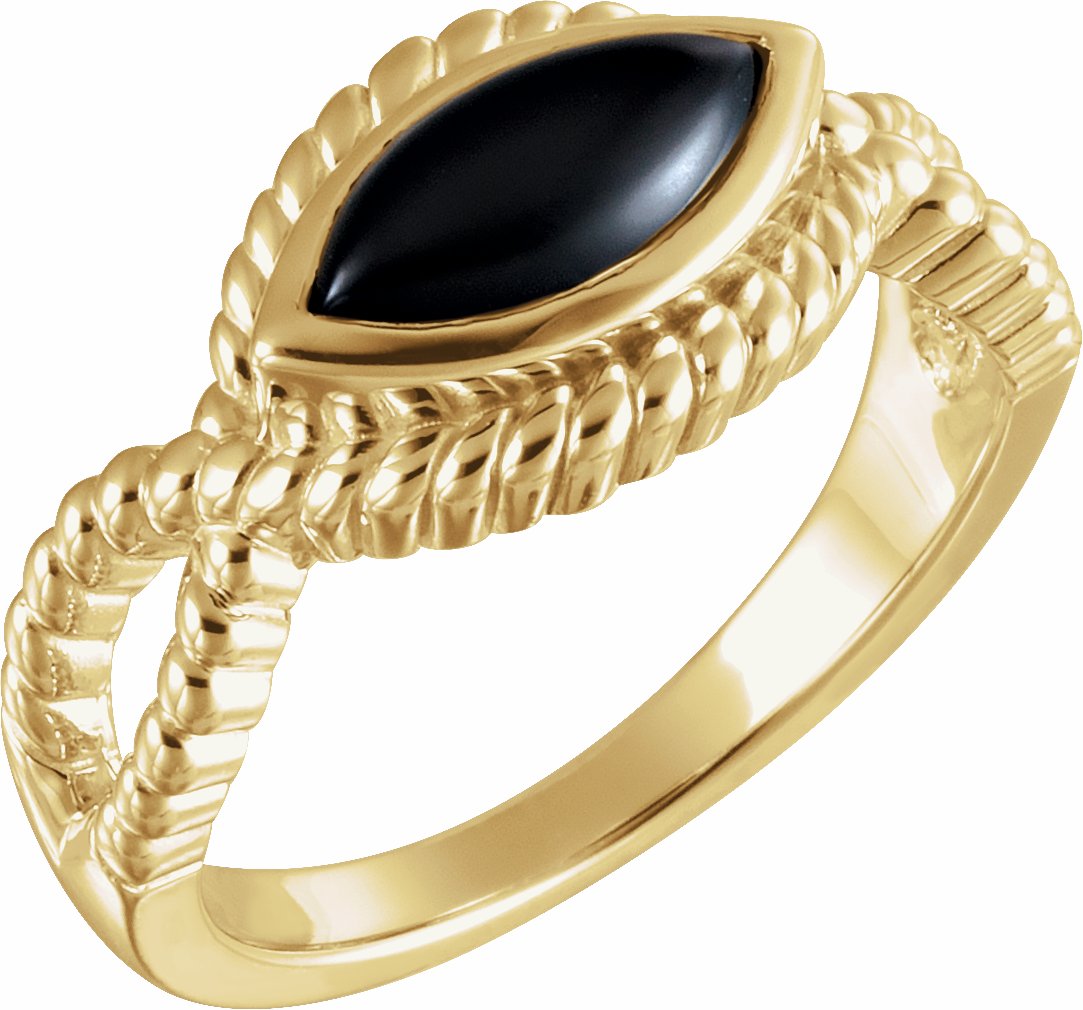 71282 / Ring / Set / 14K Yellow / Marquise / 10 X 5 Mm / Polished / Genuine Cab Onyx Ring