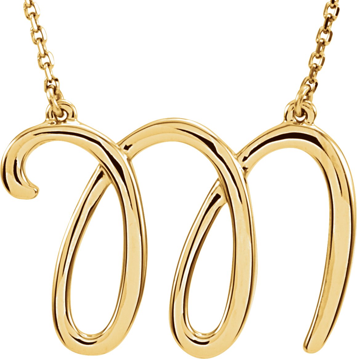 84635 / Necklace / 14K Yellow / Initial M / Polished / Script Initial 16 Inch Necklace