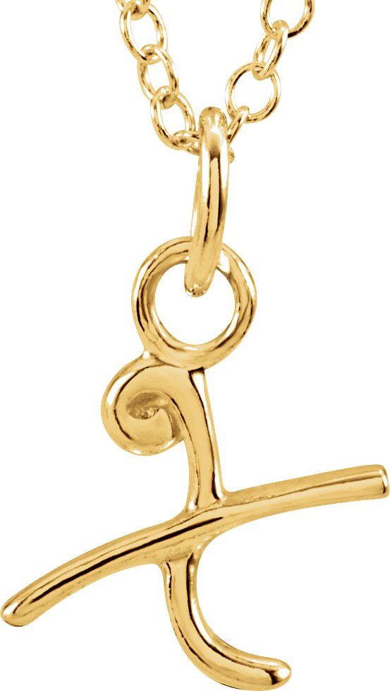 85899 / 14K Yellow / X / Polished / 18.00 Inch Lowercase Script Initial Necklace
