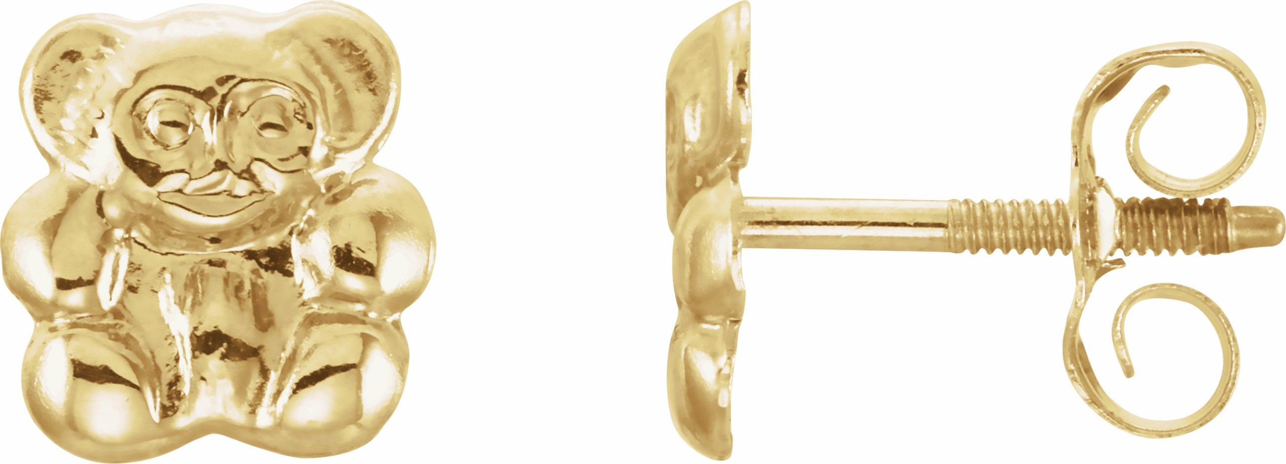 192026 / 14K Yellow / Pair / Without Box / Polished / Youth Teddy Bear Earrings With Backs