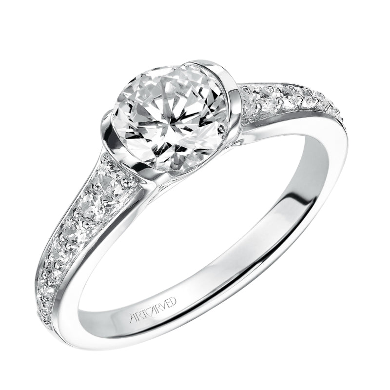 Artcarved Bridal Mounted with CZ Center Contemporary Bezel Diamond Engagement Ring Brynn 14K White Gold - 31-V386ERW-E.00