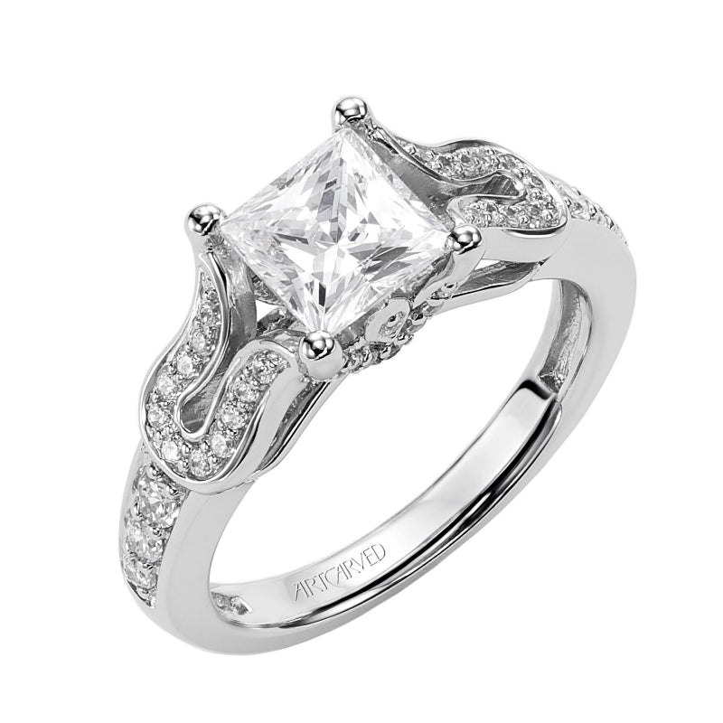 Artcarved Bridal Mounted with CZ Center Vintage Engagement Ring Candance 14K White Gold - 31-V355FCW-E.00
