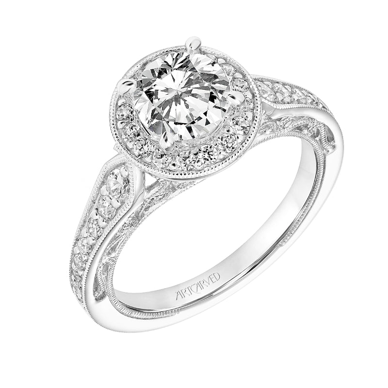 Artcarved Bridal Mounted with CZ Center Vintage Filigree Halo Engagement Ring Dolores 14K White Gold - 31-V763ERW-E.00