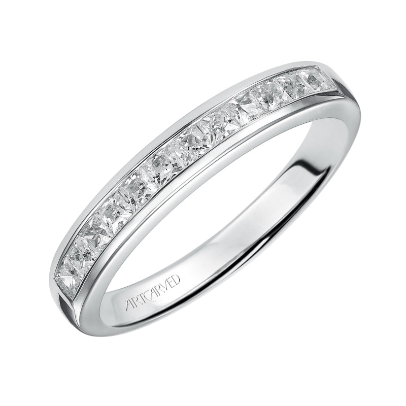 Artcarved Bridal Mounted with Side Stones Classic Diamond Wedding Band Alena 14K White Gold - 31-V410W-L.00
