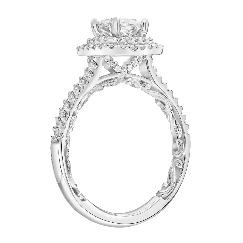 Artcarved Bridal Semi-Mounted with Side Stones Classic Lyric Halo Engagement Ring Haven 14K White Gold - 31-V931EUW-E.01