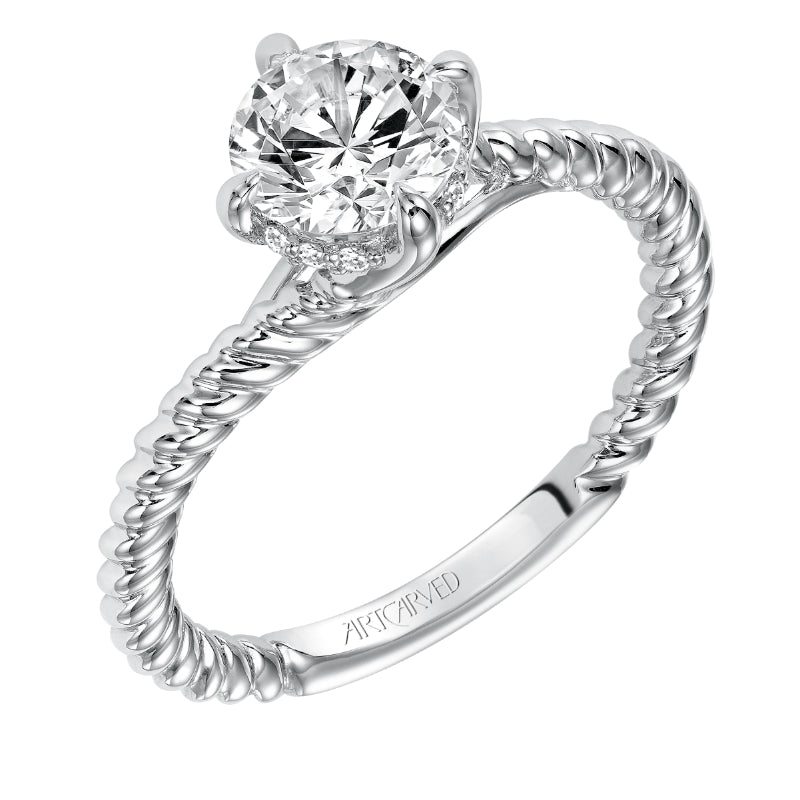 Artcarved Bridal Semi-Mounted with Side Stones Contemporary Americana Solitaire Engagement Ring Aline 14K White Gold - 31-V568ERW-E.01