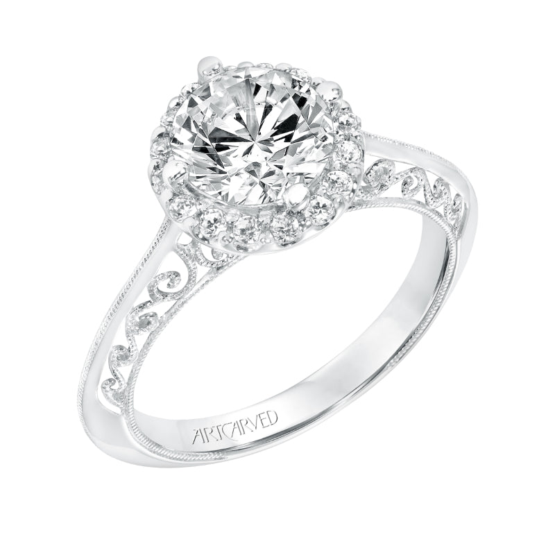 Artcarved Bridal Semi-Mounted with Side Stones Vintage Filigree Halo Engagement Ring Isador 14K White Gold - 31-V729GRW-E.01