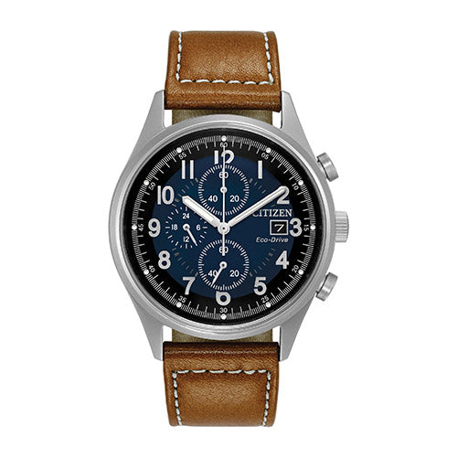 For the every day watch wearer, add a touch of classic refinement to your growing collection with a newly designed Citizen Chandler timepiece. This stylish watch, with stainless steel case and bracelet with matte grey dial, features 1/5-second chronograph