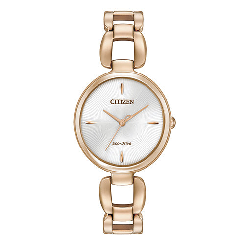 The Citizen L Collection represents the epitome of a ladies timepiece, showcasing all the sophistication, style and power that appeals to today's woman. Featured here in a rose gold-tone stainless steel.