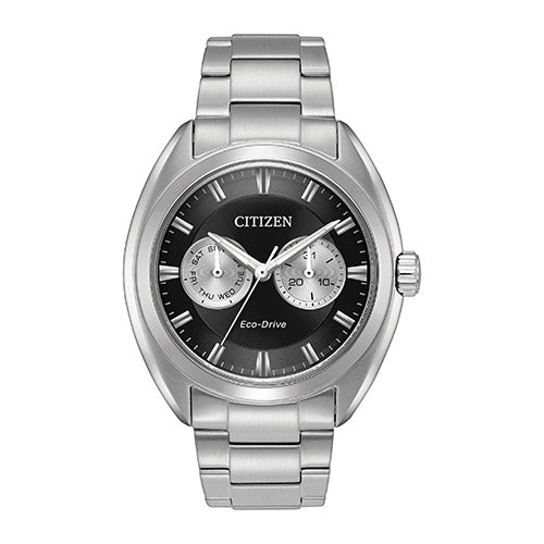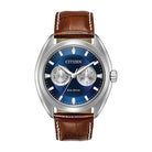 Add a touch of sophistication to your watch collection with this dress watch from Citizen. This sophisticated Paradex watch, in stainless steel case, brown strap with contrast stitching and a azure dial, features analog day and date.