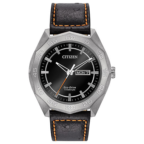 Citizen Super Titanium Men's Watch features a 44mm Silver-Tone Titanium Case, Mineral Crystal, Movement: Eco-Drive J800, Functions: 3 Hand, Day-Date, Water Resistance: WR100/10Bar/333ft Swimming, Showering & Snorkeling