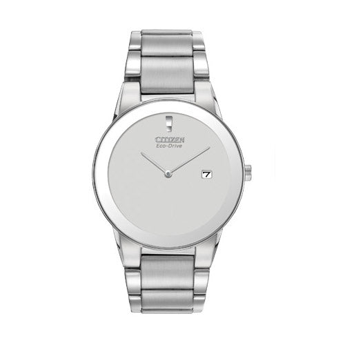 Axiom's refined yet sleek design offers a day-to-night fashion options for the avid trendsetter. In stainless steel bracelet with a white dial and stainless steel accents and the intriguing feature of edge-to-edge glass.