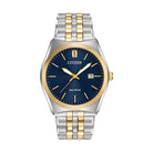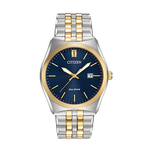 The byword is versatility for this handsome 3-hand Citizen Corso watch crafted in two-tone stainless steel. Details include a sophisticated deep blue dial and a date window perfect for the every day businessman.