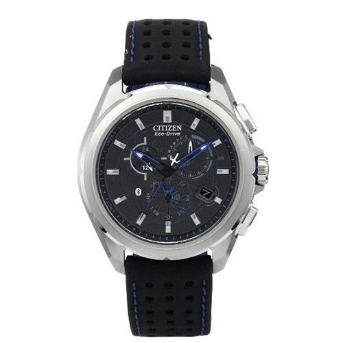 Both smart and good looking, the Citizen Proximity, features perpetual calendar chronograph with second time zone, 12/24 hour time, power reserve and sporty leather strap with a nylon backing. This timepiece is Bluetooth 4.0 compatible and just like the w